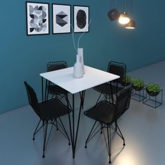 Tekzen Home Mermer Desenli Kare Yemek Masa Takimi Siyah 2 Adet Tel Sandalye Tekzen