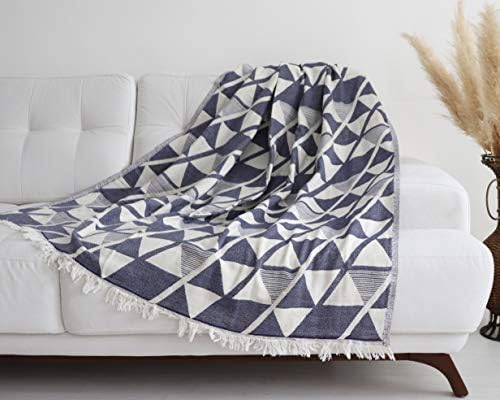 Eponj Home Naturel Koltuk Ortusu Dama Lacivert Tekzen