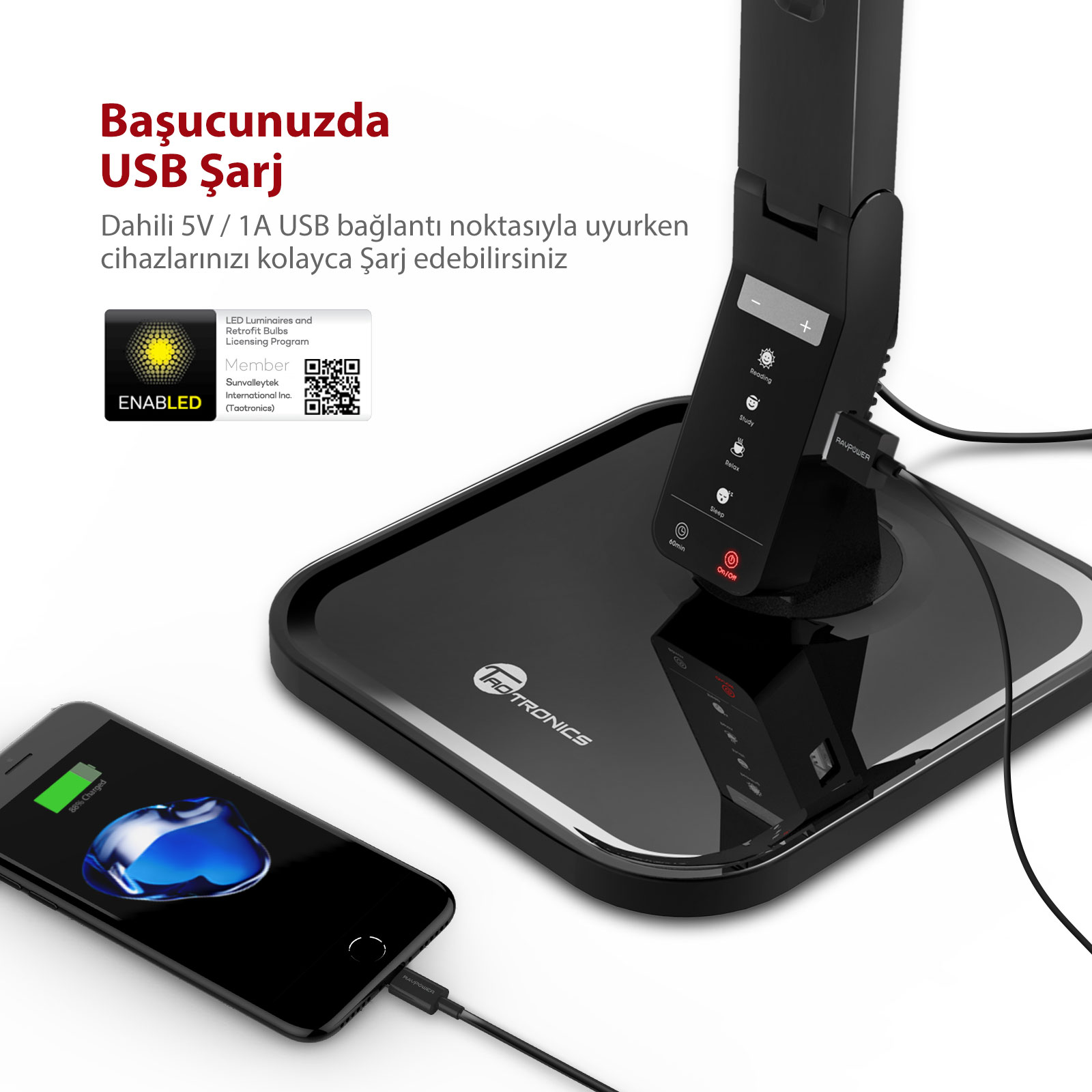 Taotronics Tt Dl16 Usb Hizli Sarj Portlu Led 12w Masa Lambasi Fiyatlari Ve Ozellikleri
